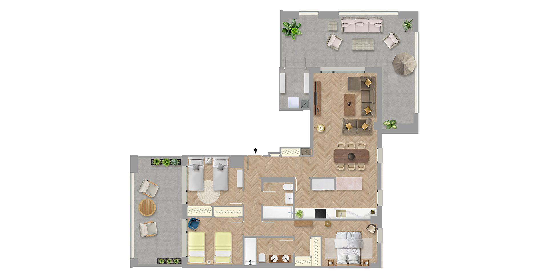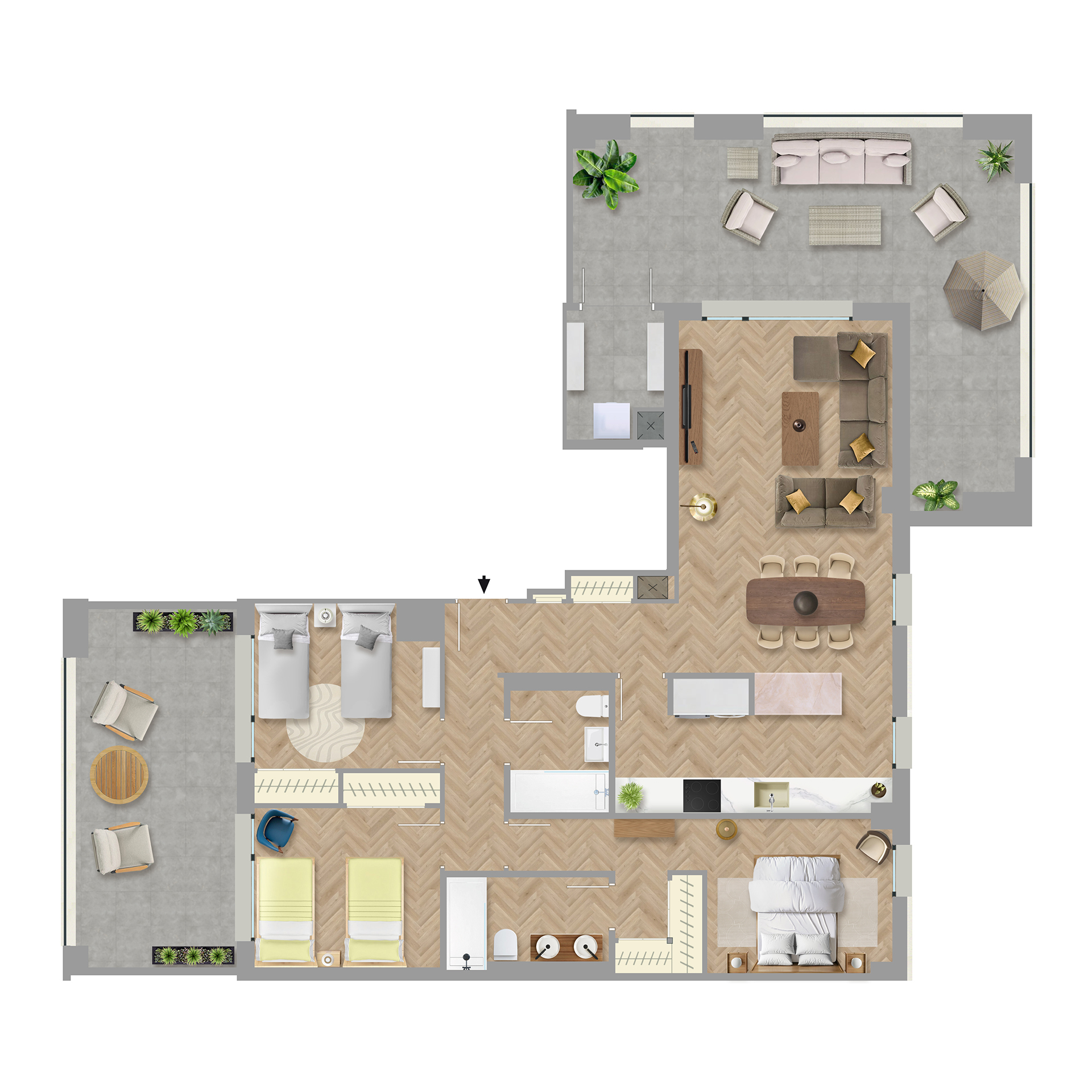 Residencias exclusivas donde la luz natural adquiere relevancia gracias a sus amplios ventanales y terrazas. Estancias amplias y funcionales diseñadas para ofrecer una armonía que únicamente el buen diseño y la minuciosa selección de materiales pueden ofrecer